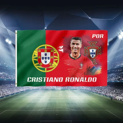 Show your passion for football legend Cristiano Ronaldo with this premium-quality flag — designed for durability and bold visual impact. Made from heavy-duty, UV-resistant polyester fabric, it withstands sun, wind, and rain without fading or fraying. The crisp, vivid print captures Ronaldo’s iconic imagery in stunning detail, ideal for fans at home, in the garage, or at outdoor events. Measuring a standard 3×5 ft, it fits most flagpoles and wall mounts. Reinforced double-stitched edges and sturdy brass grommets ensure long-lasting performance. Whether you’re cheering from the stands or decorating your space, this flag delivers authentic fan spirit with professional-grade craftsmanship.